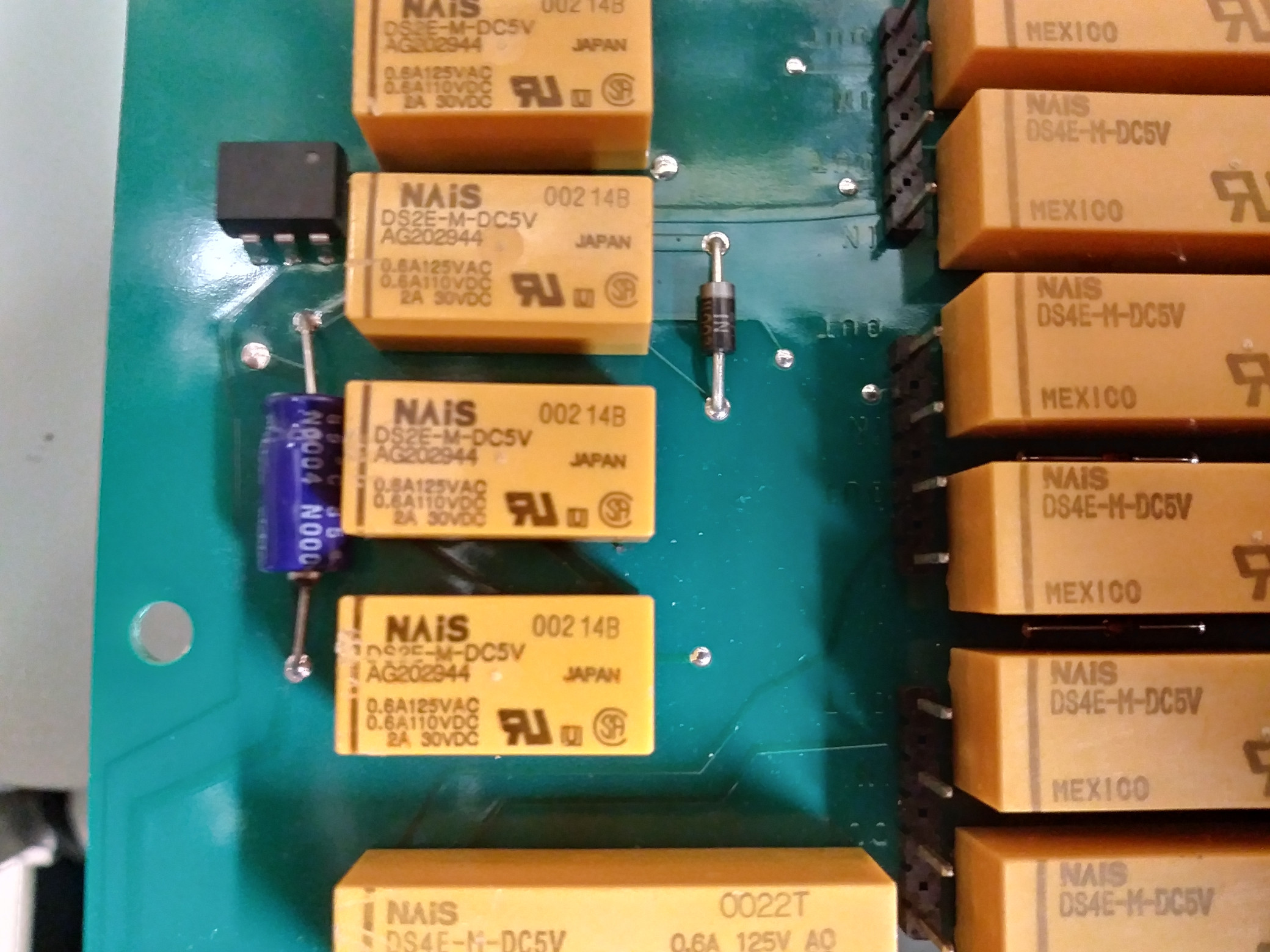 PCB packed with 5V DIP relays.